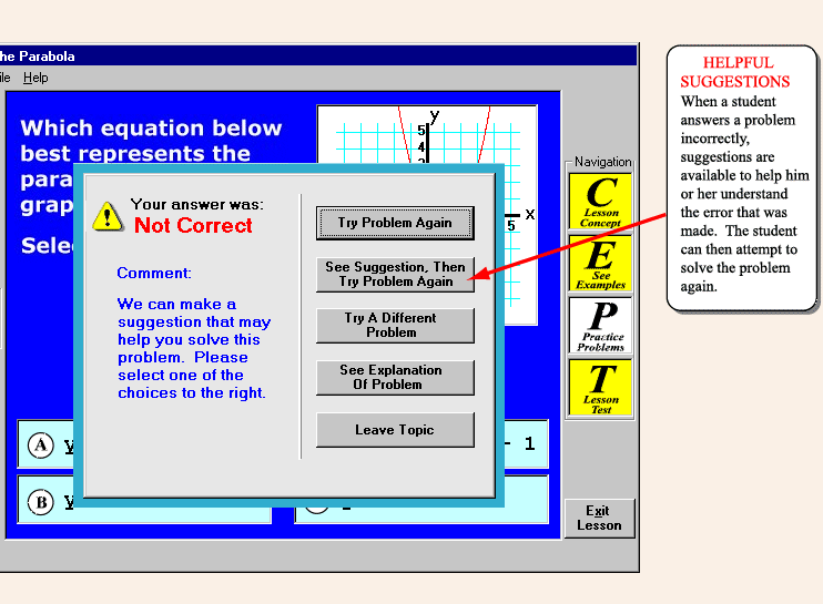 ask for a suggestion before trying the problem again. In some cases the program may suggest a particular