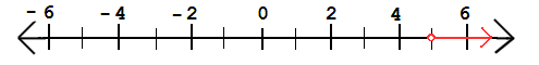 The arrow contains points to the right of the number 5, but it does not include 5 because there is an open circle